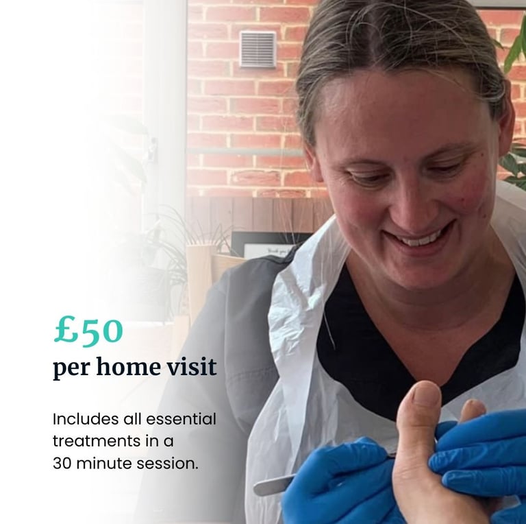 For a flat rate of £50 per home visit, we provide all the foot care services you need during your appointment.